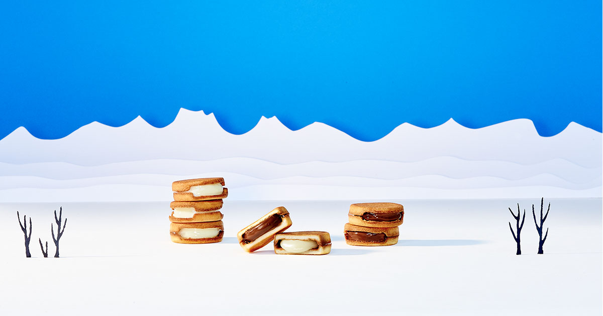 SNOWS「スノーサンド」は北海道の豊かな自然が生み出した特別なスイーツです。そのキーとなるのが北海道産の素材へのこだわりです。スノーサンドには、北海道の広大な自然の中で育まれた放牧牛乳から作られる生チョコレートが使用されています。この濃厚で繊細な生チョコレートの味わいは、冬の北海道を連想させるリッチでまろやかな風味が特徴です。また、ラングドシャクッキーも北海道産の原材料をふんだんに使用しており、そのサクサクとした食感が生チョコレートとのバランスを完璧に引き立てています。寒冷な気候と澄んだ空気がもたらす特別な味わいが「スノーサンド」の誕生背景にあるのです。